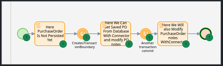 « Here We Can Get Saved PO From Database With Connector and modify PO notes », type: Connector