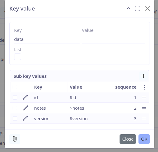 In your case paramsMap most likely (depends on the request) will be something like [« sourceData » : <Map_with_values>] and the key in the request payload will be - data, value - $sourceData.